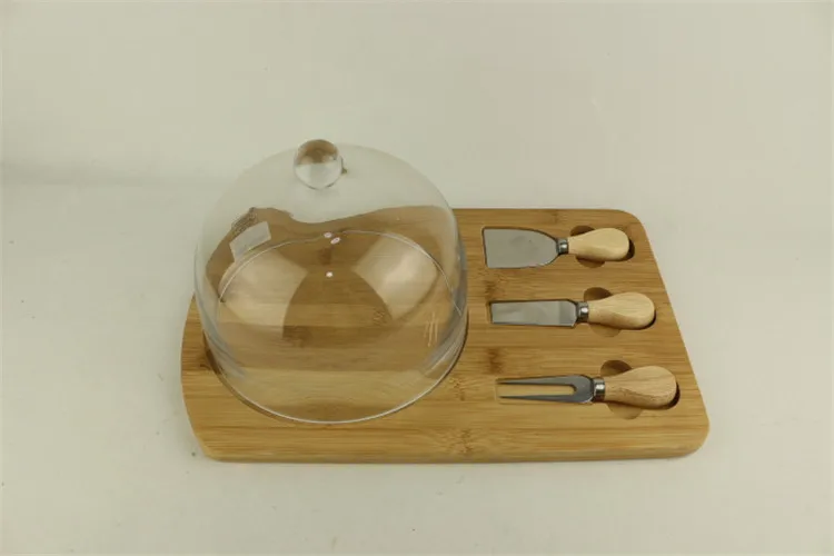 Broad-spectrum cake shop and home decorative clear dome glass cake stand and dome with wood bracket