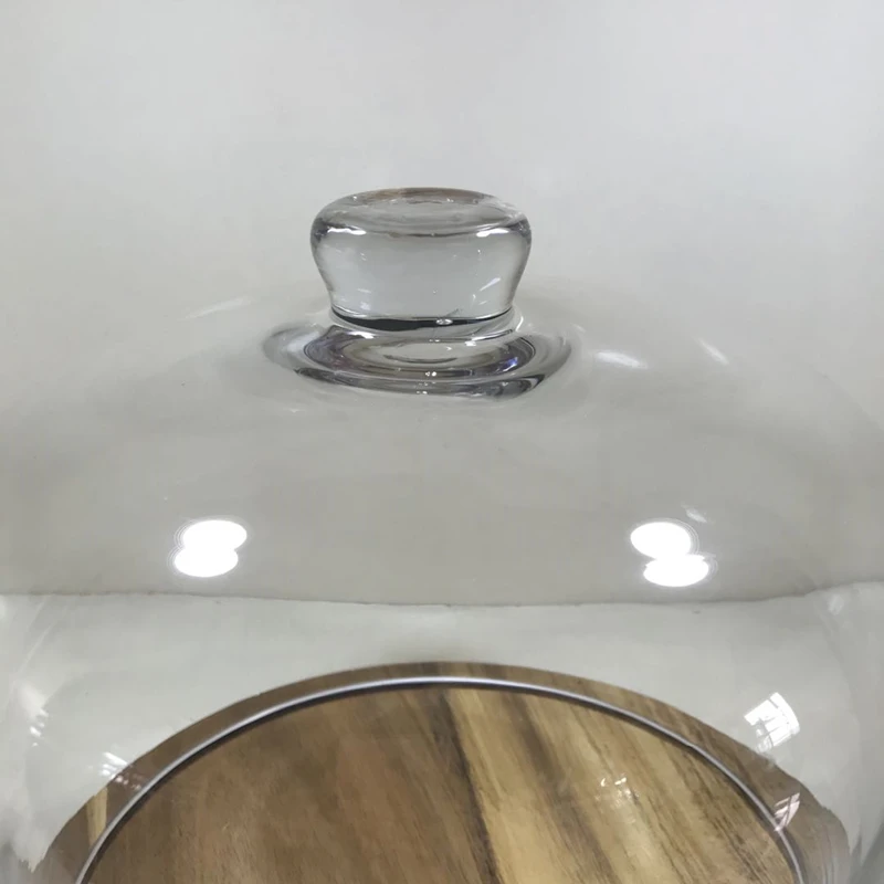 Wholesale Handmade 8 inch 10 inch Rubber Wood Cake Stand with Glass Dome