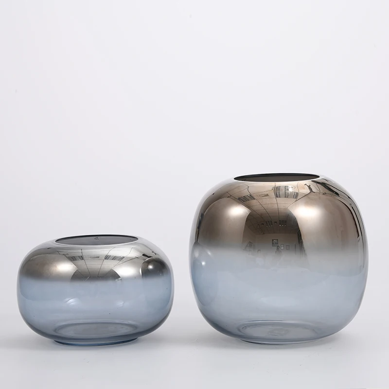 You are here Home » Products » Glass Vase » Electro-water plating glass vase bottom with blue painted bottom glass flower vase for home deco factory directly supply