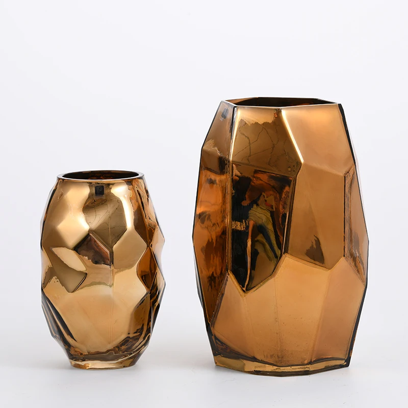 Electroplating golden color bowl design glass flower vase manufacture supply