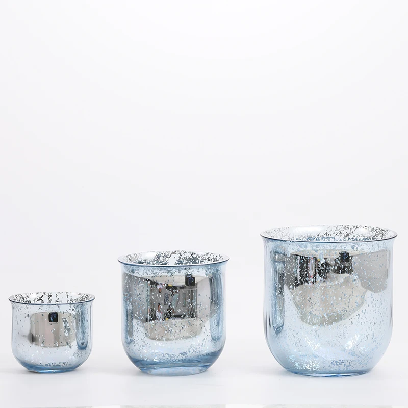 Electroplating silver blue glass paint modern special design glass holder flower vase on sale
