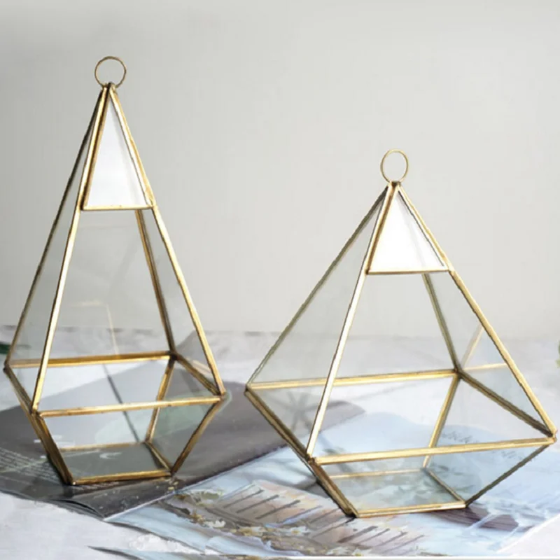 You are here Home » Products » Glass Terrarium » European vintage brass Terrarium diamond shape Geometric flower house