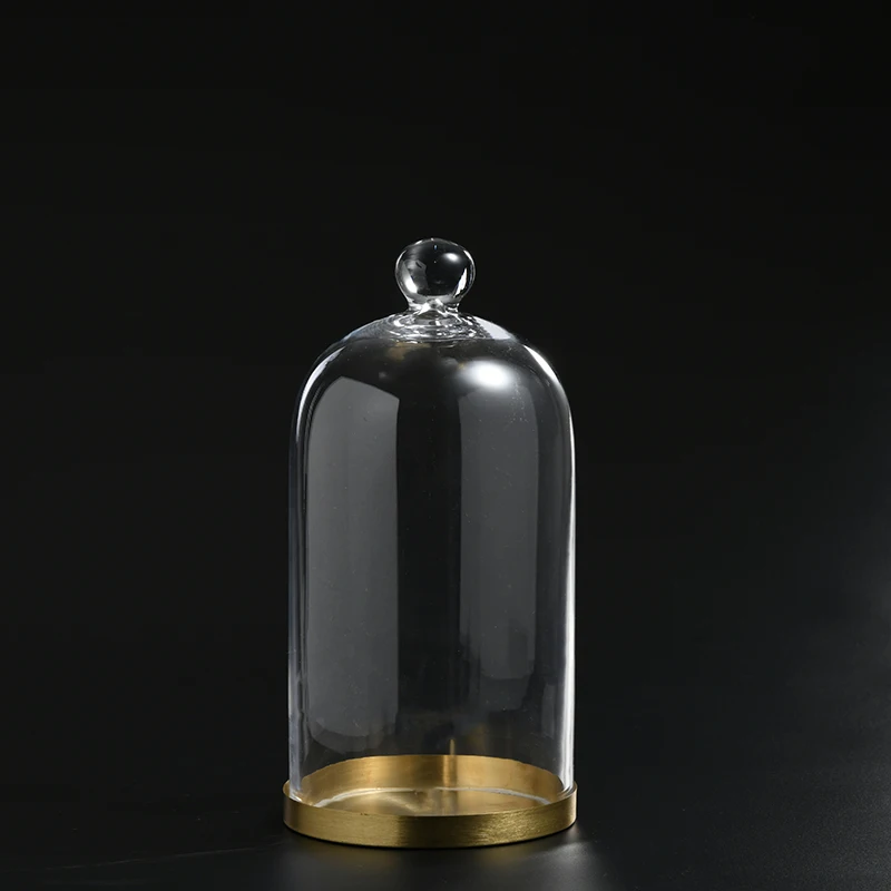 Factory Directly Sale Wholesale Customized Clear Glass Cake Cover with Wooden or Golden Metal Base