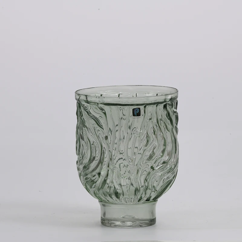 Floral green or transparent glass vase cup open mouth design for home decoration glass flower vase on sale