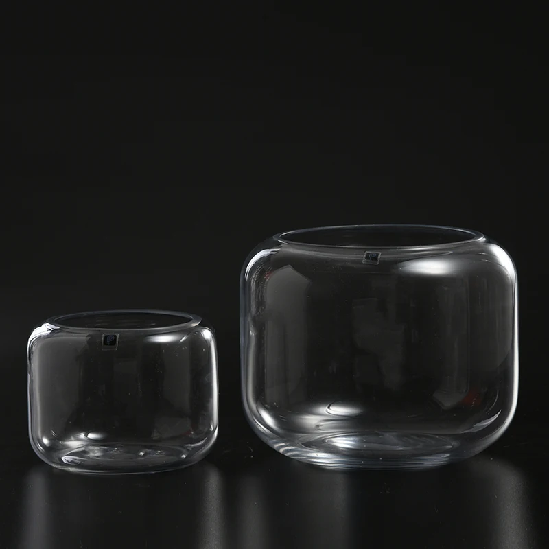 You are here Home » Products » Glass Vase » Glass flower container vase customized transparent hand-blown clear thick glass flower vase on sale