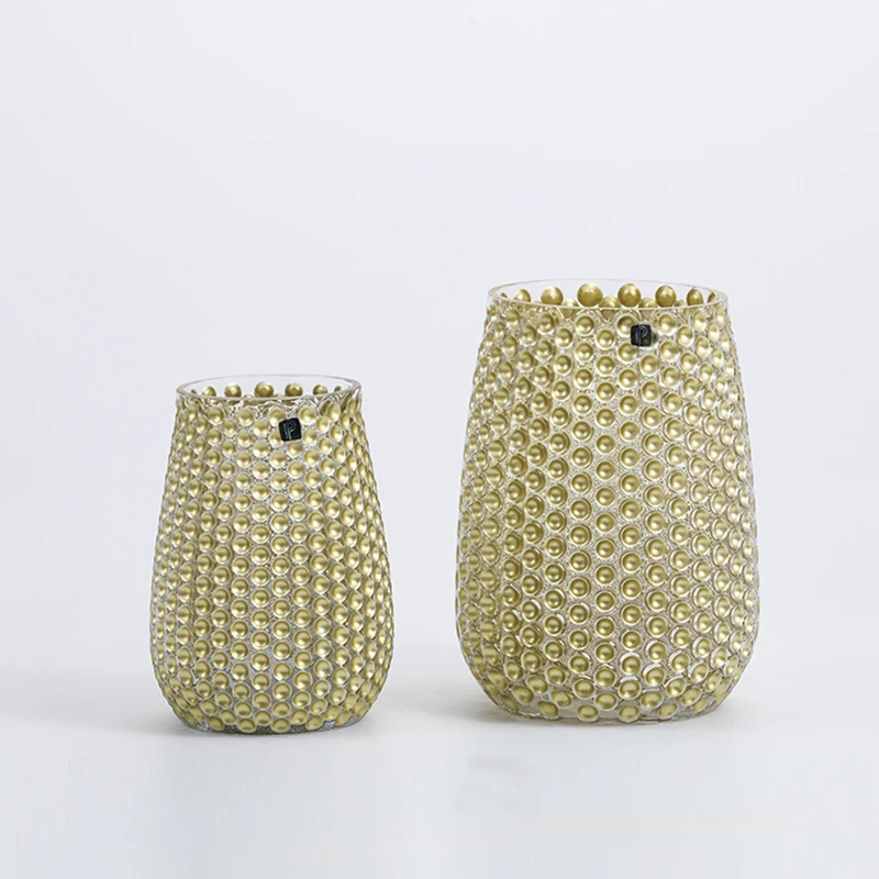Glassware factory glass home decor like a golden bowl with electro golden ring glass flower vase
