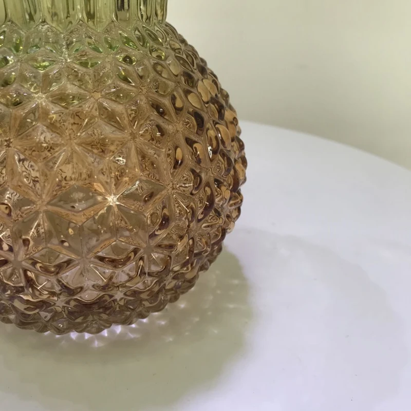 You are here Home » Products » Glass Vase » Great Embossed Glass Vase Green Customized Low handmade Round Glass Vase