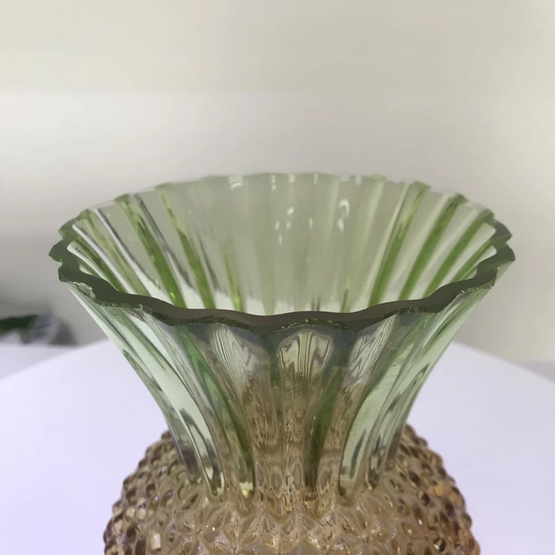 Great Embossed Glass Vase Green Customized Low handmade Round Glass Vase