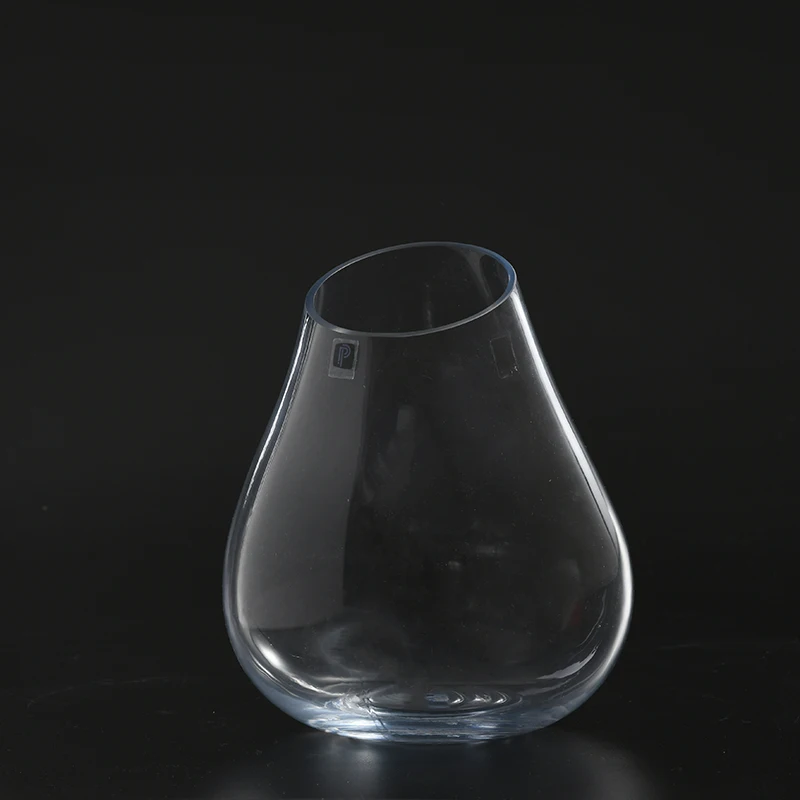 Hand-blown clear customized transparent open mouth glass flower bowl vase on sale