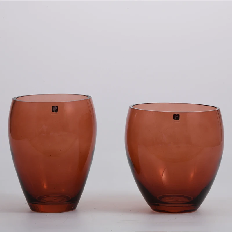 Heavy duty big glass bowl for luxury home decoration colored jar design glass flower vase flower containers