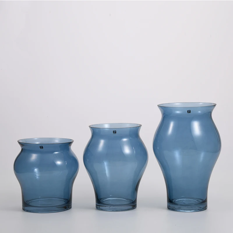 You are here Home » Products » Glass Vase » Heavy duty hand--blown blue color big mouth glassware factory directly for world whole sellers glass flower vase on sale