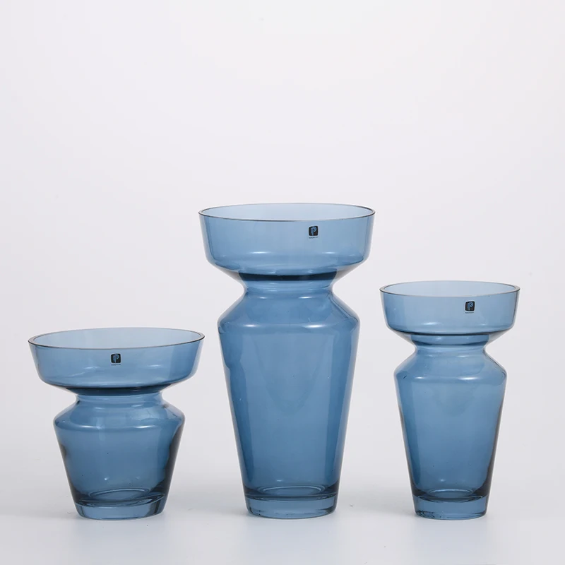 Heavy duty hand--blown blue color big mouth glassware factory directly for world whole sellers glass flower vase on sale