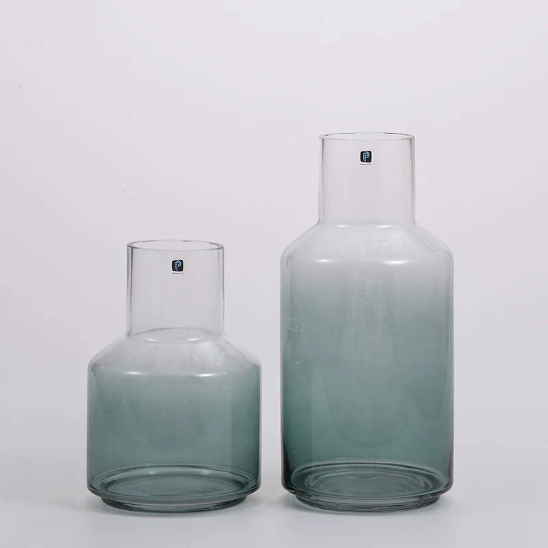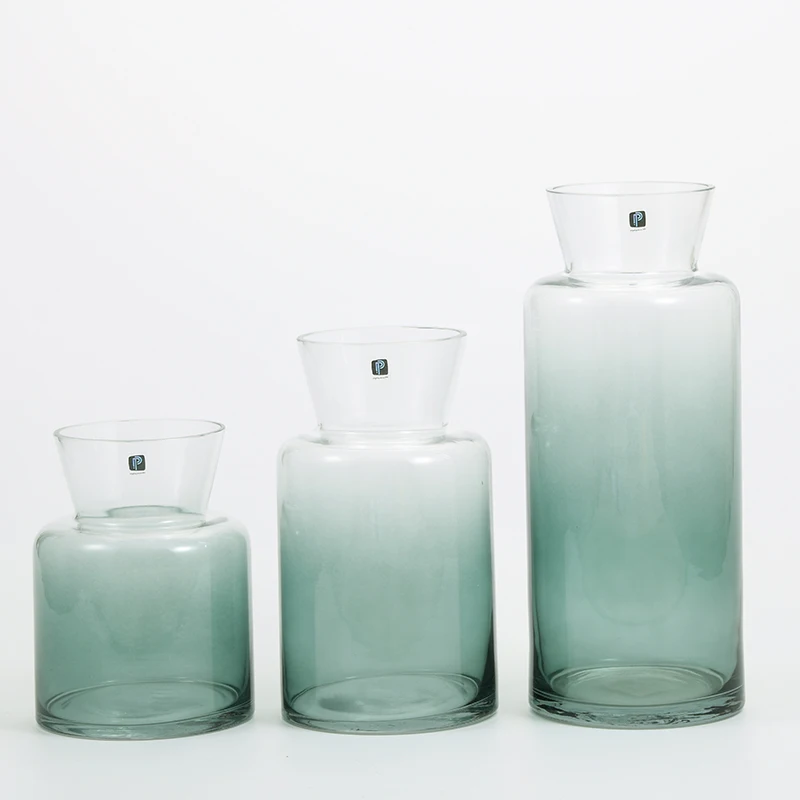 You are here Home » Products » Glass Vase » Heavy duty hand--blown glassware gradient colored with open mouth glass flower vase on sale