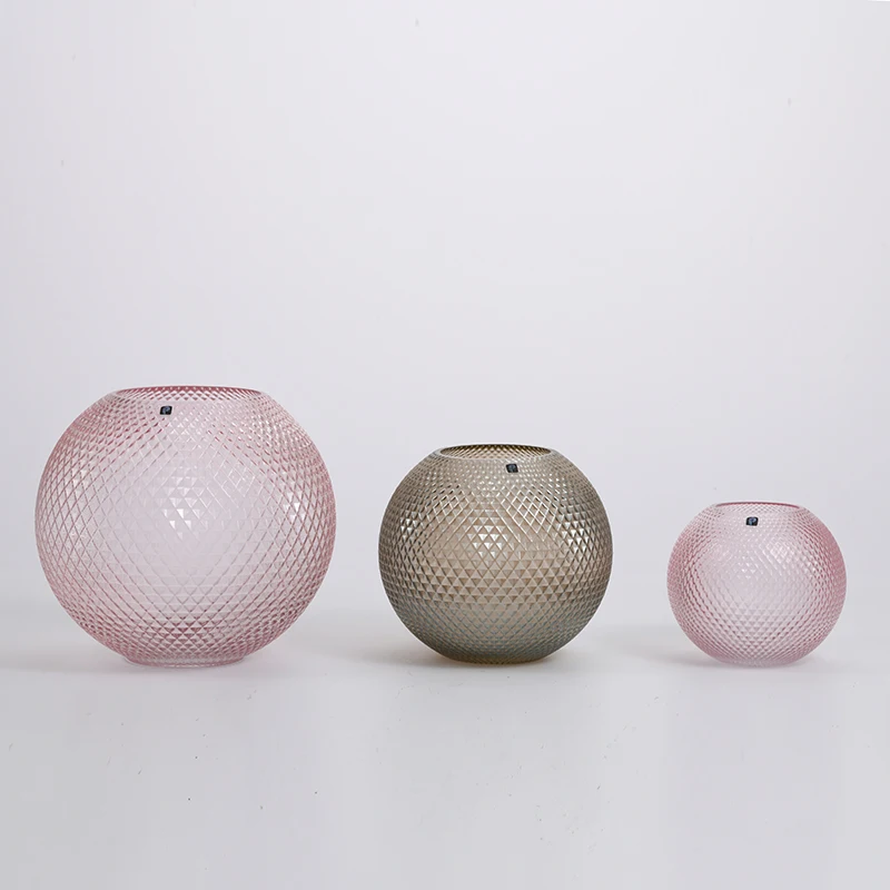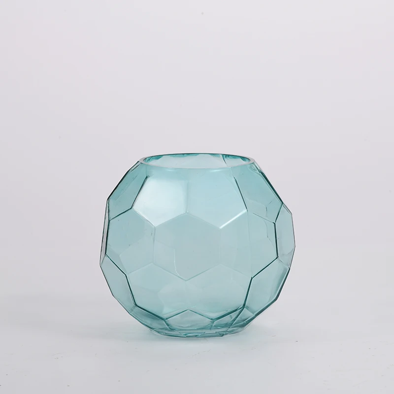 You are here Home » Products » Glass Vase » Heavy duty hand--blown glassware round bowl shape with hexagonal floral on glass flower vase on sale
