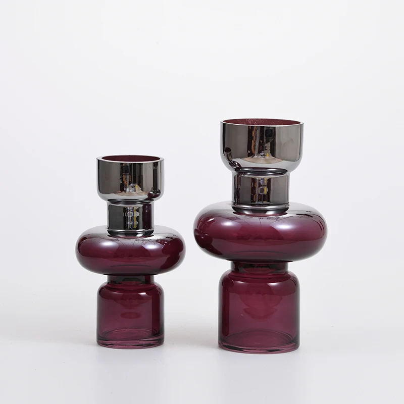 Heavy duty high fashion gradient electric-water processing artistic design glass flower vase Chinese manufacture