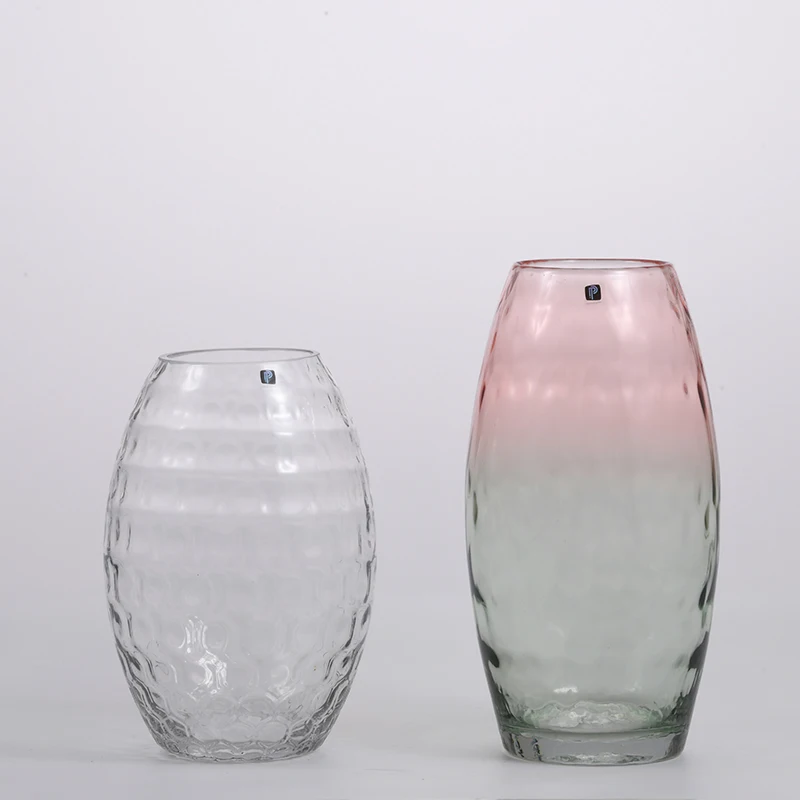 Heavy duty hot sale glass vase with floral and gradient color glass flower vase for home decoration