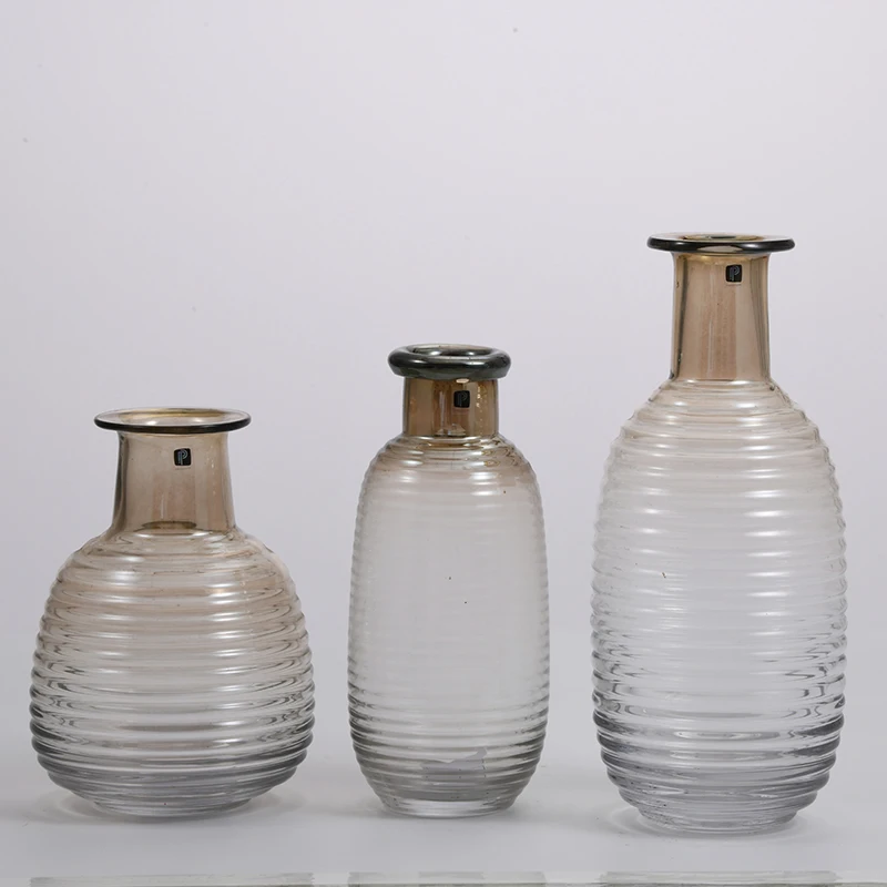 You are here Home » Products » Glass Vase » High quality Chinese manufacture vertical strip bottle design glassware decorative glass flower vase on sale
