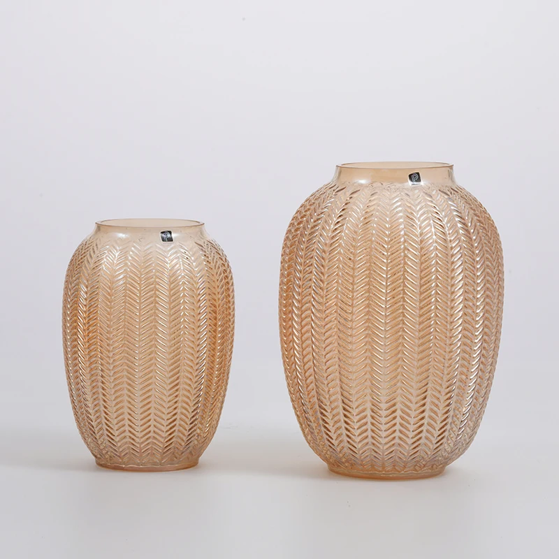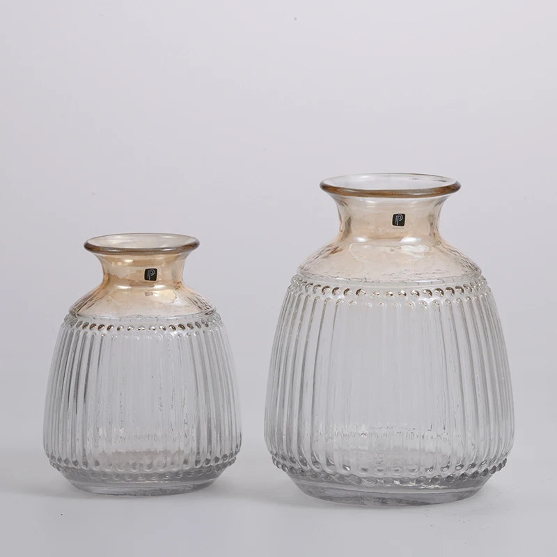 High quality Customized electro-water vertical strips glass vase hot sale design decorative glass flower vase