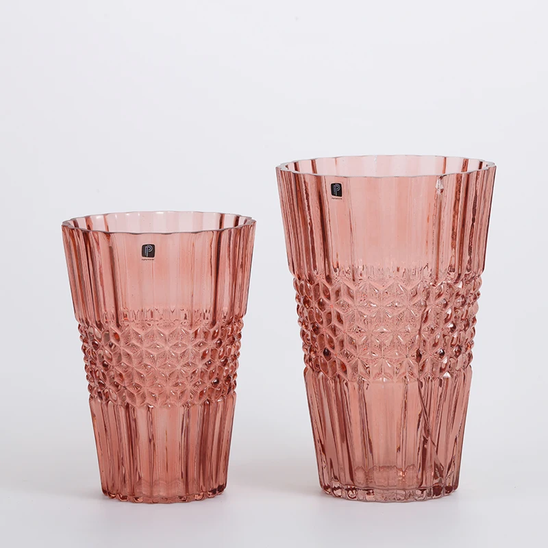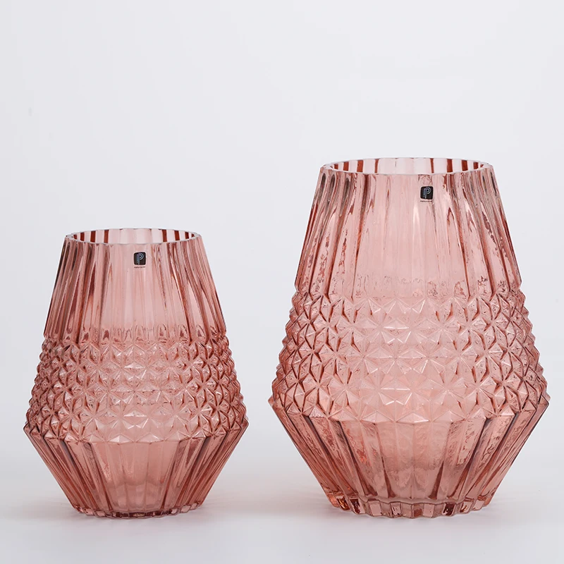 High quality fashionable floral design red rose color decorative glass flower vase Chinese factory supply