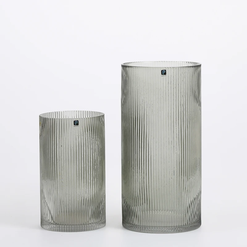 You are here Home » Products » Glass Vase » High quality glassware heavy duty cylinder vertical strip design decorative glass flower vase Chinese manufacture