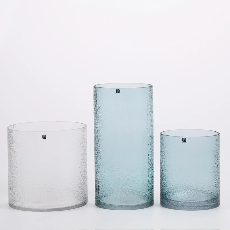 High quality glassware heavy duty cylinder vertical strip design decorative glass flower vase Chinese manufacture