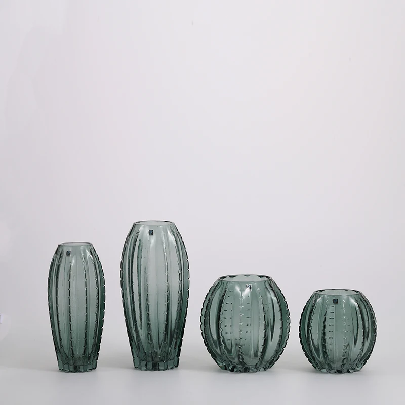 You are here Home » Products » Glass Vase » High quality heavy duty hand-blown gradient grey color with vertical strip glass flower vase Chinese factory supply
