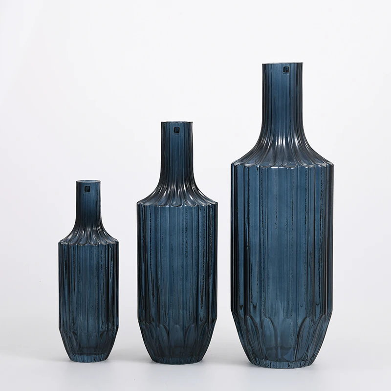 High quality modern style dark blue and transparent glassware for decoration glass flower vase Chinese manufacture