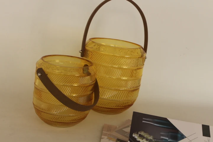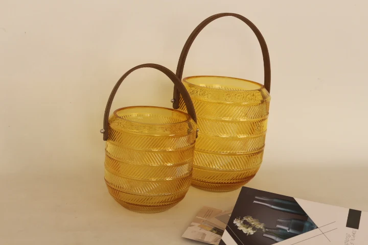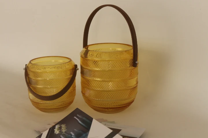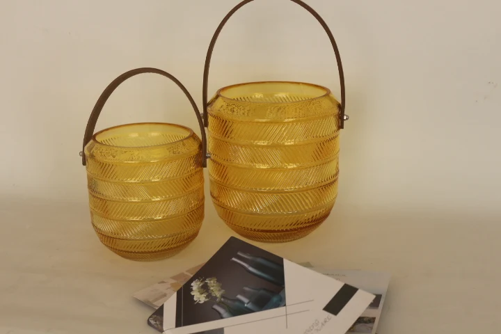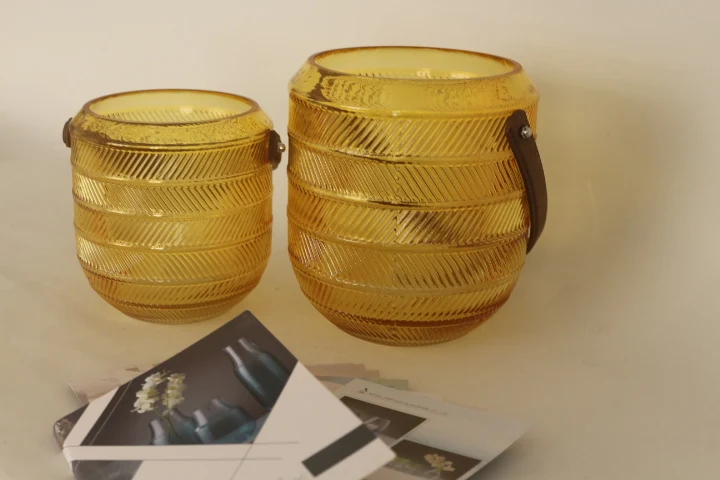 You are here Home » Products » Glass Candle Holder » High quantity high standard machine produced yellow glass candle jar with handle