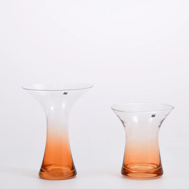 Hot sale glass vase with orange bottom and big open mouth for home decoration gradient colored glass flower vase