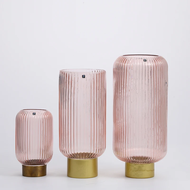 You are here Home » Products » Glass Vase » Hot selling Glassware pink glass vase with golden ring basic transparent glass flower vase for home decoration