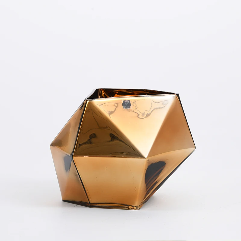 You are here Home » Products » Glass Vase » Hot selling golden geometric design electroplating floral glass flower vase manufacture supply
