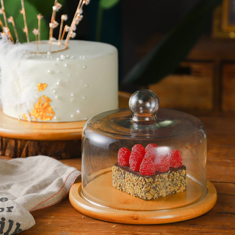 You are here Home » Products » Glass Tableware » Glass Cake Plate And Dome » Manufacturer wholesale Elevated acacia wood dessert tray glass transparent wooden cake stand