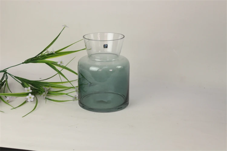 Quality-Assured Creative Round Shape Green Gradient Color Handmade Household Craft Glass Vase