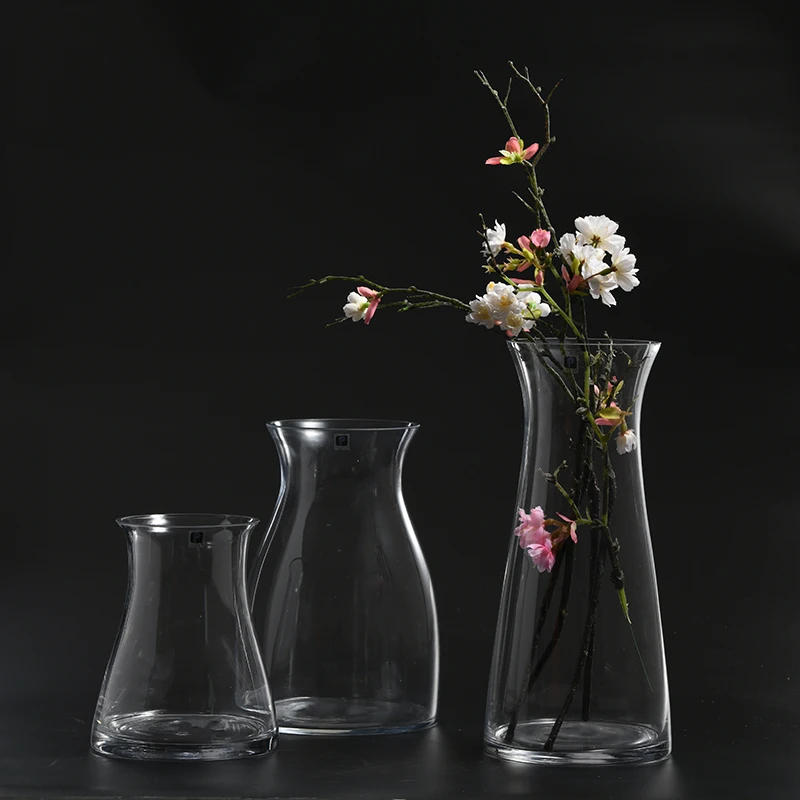 Table Glass Flower vase for Room decoration with big mouth in different sizes
