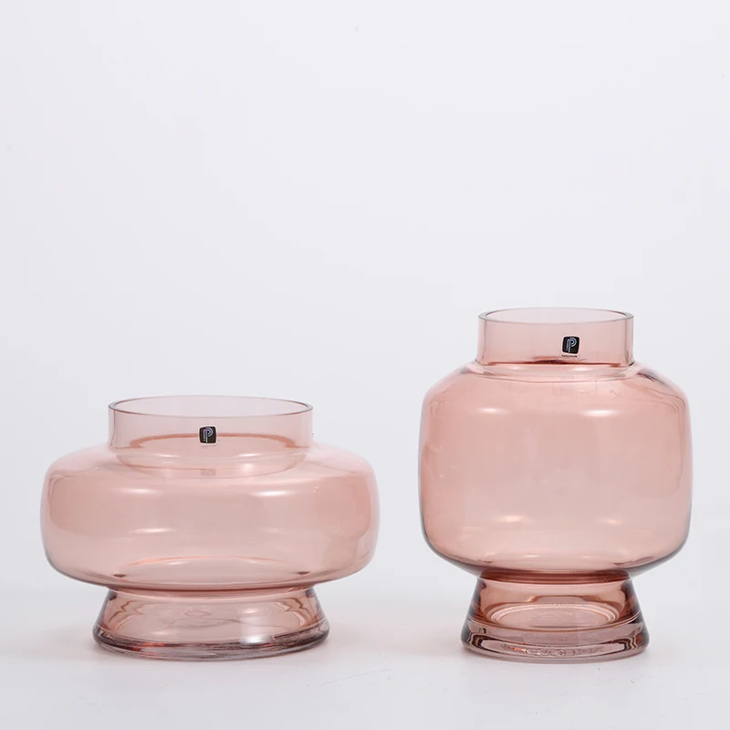 Transparent colored glass vase with big head flower glass vase for decoration factory directly supply