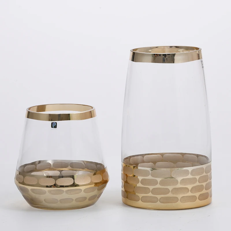 Transparent golden circle around Luxury flower glass vase manufacture supply