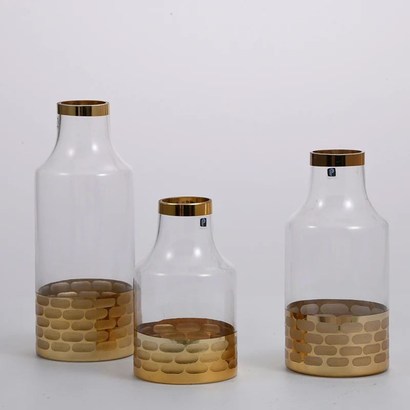 You are here Home » Products » Glass Vase » Transparent glass vase golden circle with floral Luxury flower glass bottle vase manufacture supply