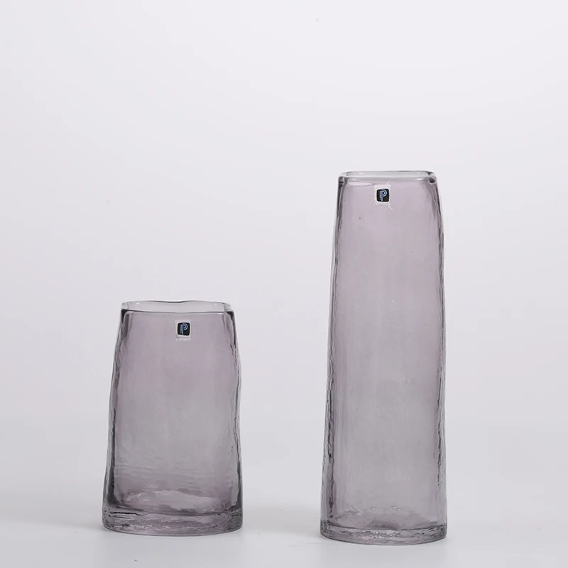 You are here Home » Products » Glass Vase » Transparent grey glassware with simple design and nature mouth glass flower vase Chinese factory supply