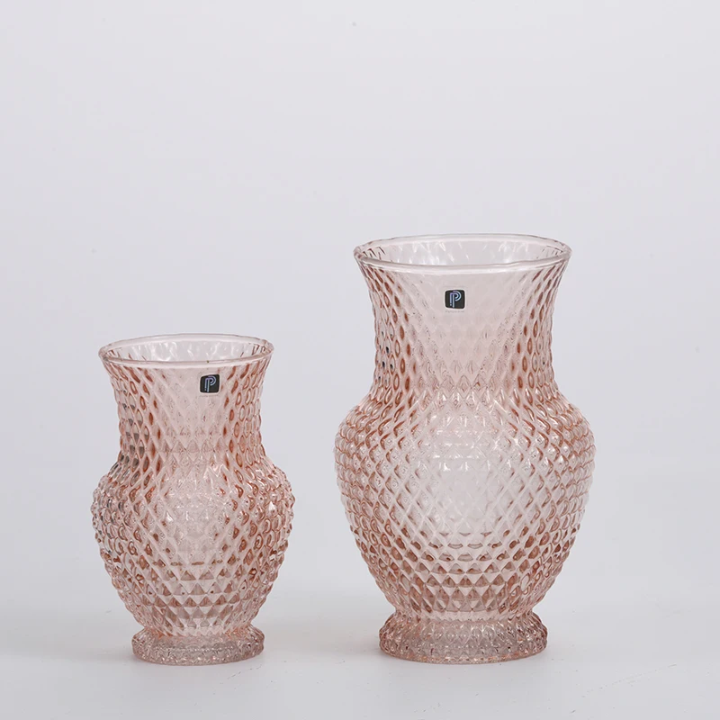 Transparent pink floral glass vase for table top decoration flower glass vase manufacture supply