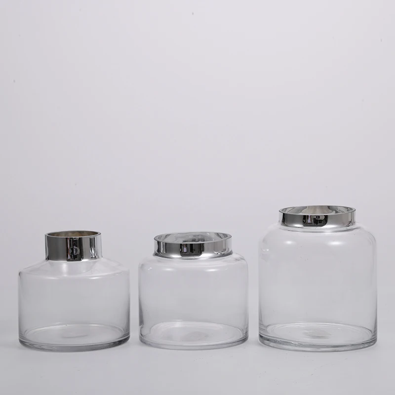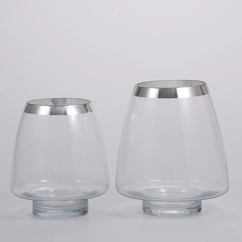Transparent silver ring on the open mouth Luxury flower glass bottle vase manufacture supply