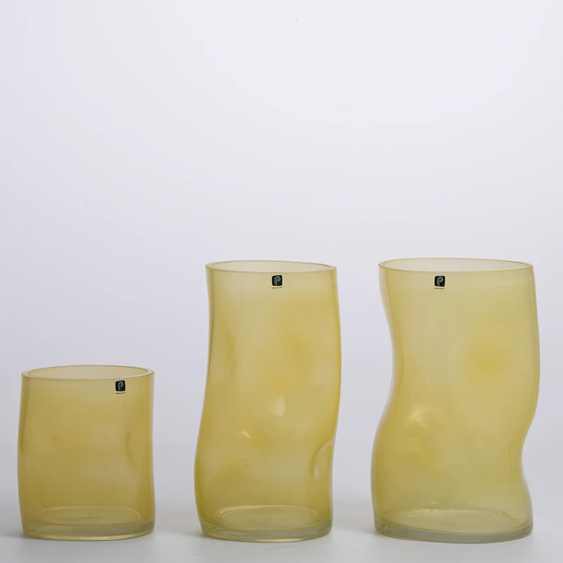 You are here Home » Products » Glass Vase » Waving design yellow transparent hand blown decorative heavy duty glass flower vase Chinese manufature