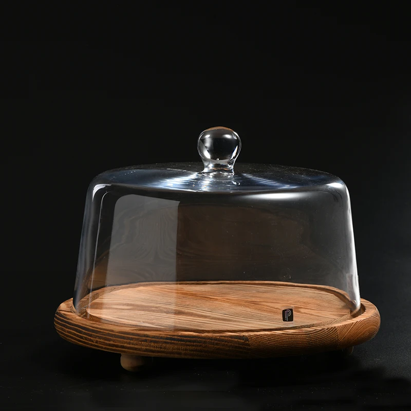 Wood plate Glass Cake Cover Dessert Bread Cake Display Stand Manufacture Supply For Home Party Decoration