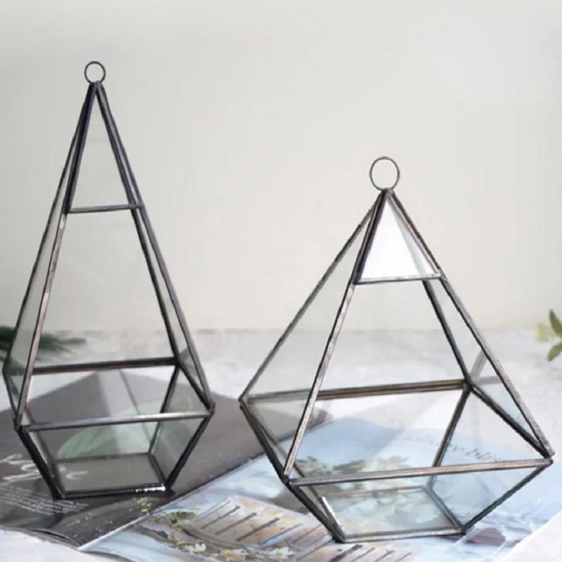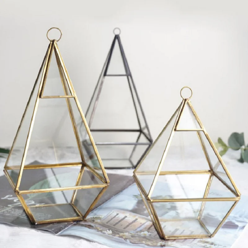 wholesale online New design luxury black gold geometric glass terrarium vase
